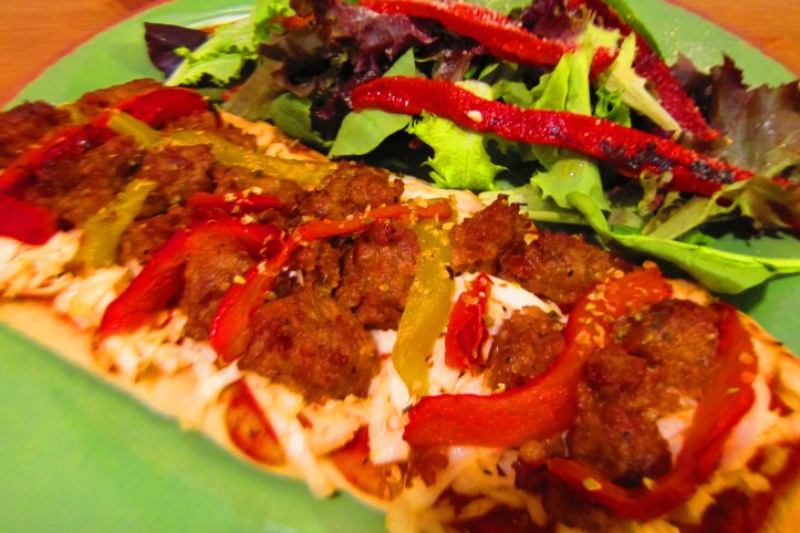 When making pizza I really like the cheese brand vegan gourmet, which you can usually find at Whole Foods. It comes in block form, so you have to do the shredding yourself, but the end result is well worth it. This cheese actually melts and tastes like the real deal, because let’s be honest… a lot of substitutes don’t! When picking out the sausage be sure to buy fresh sausage so you can remove the casing. Processed sausage will retain it’s circle shape and doesn’t work as well.