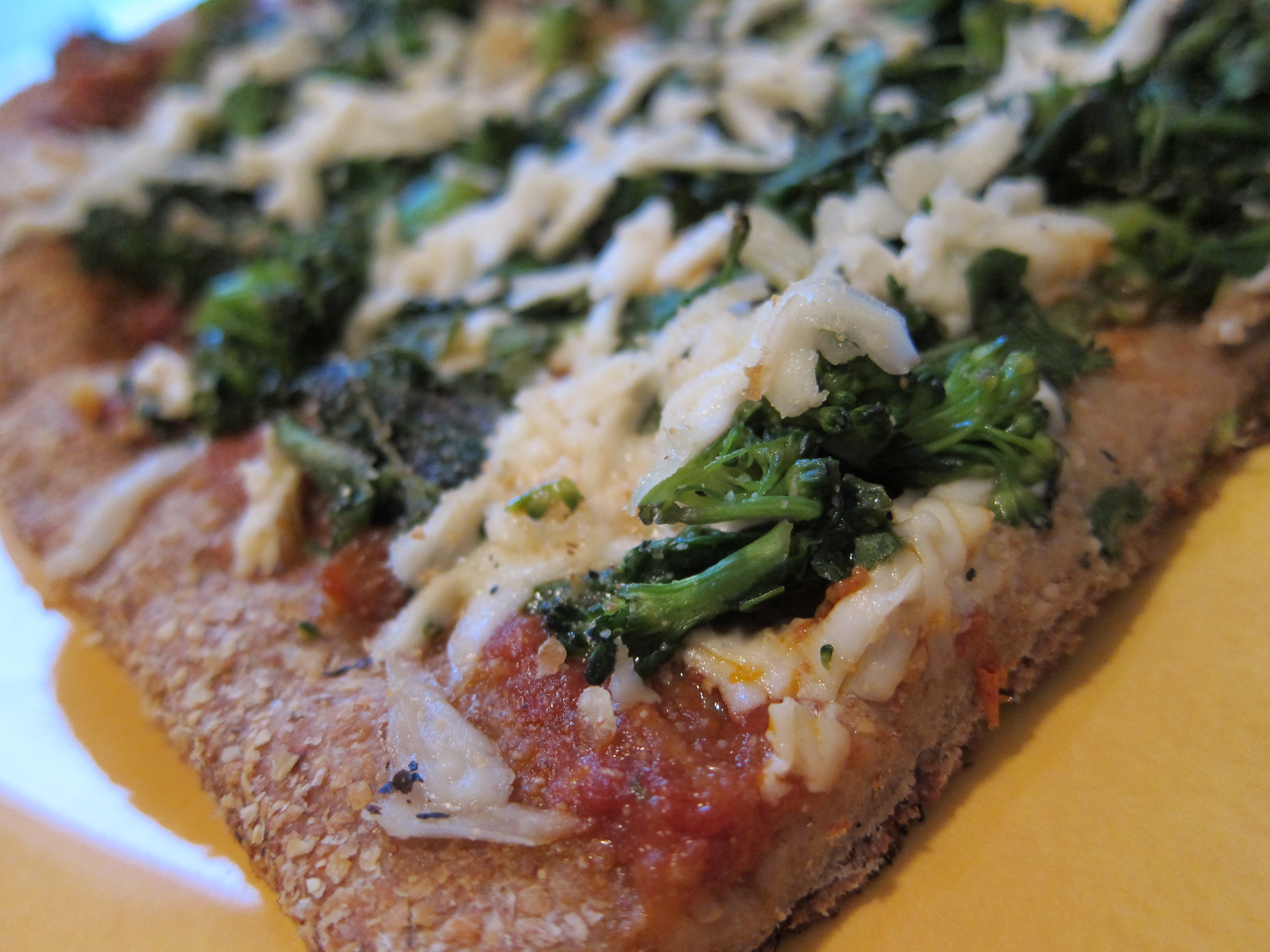 - Use whole wheat dough (not so revolutionary) and substitute flax seed meal or wheat germ instead of the flour or corn meal you might normally use rolling out the dough (have both stocked in my kitchen, awesome!).
