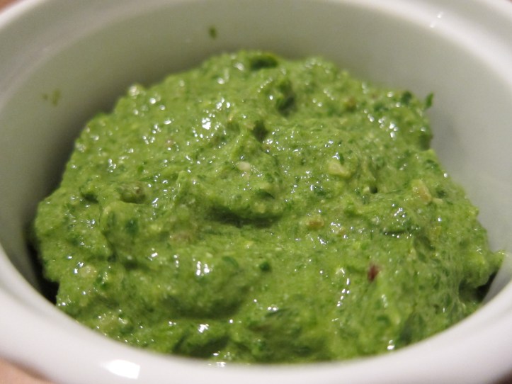 While the soup is cooking, you can make the pesto for the sandwich. It’s really easy! Add all the ingredients into a food processor and blend. Done!