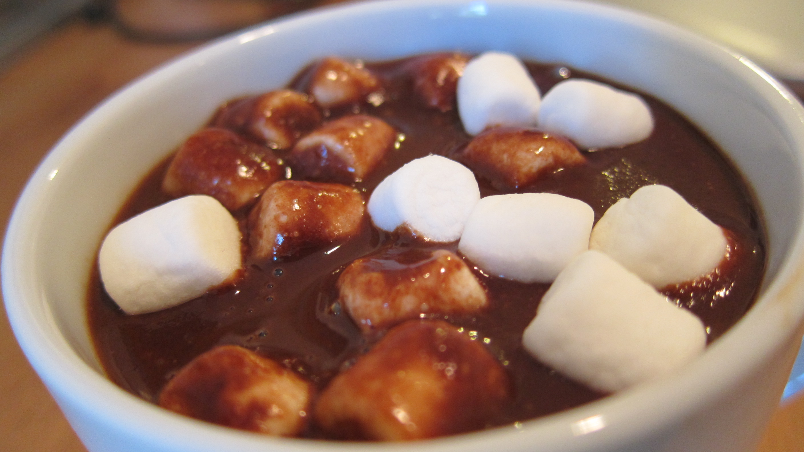 Pour milk and creamer in a small sauce pan and heat on medium until small bubbles form around the rim. Reduce heat to low and add in chocolate stirring until completely combined. Whisk in peanut butter and brown sugar until creamy and smooth. I should probably say while this hot chocolate is very good, it is also very very rich =)