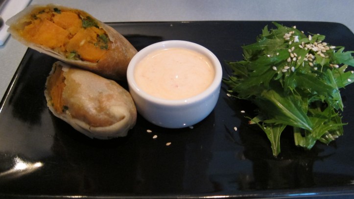 Last but certainly not least was a visit to Cafe Paradiso in Cork City. This was one of the places Bobby Flay stopped at during his tour and I was dying to go! The restaurant is strictly vegetarian but has an amazing variety of food and types of cuisine. C and I got the Gingered Sweet Potato Springroll with Coconut-Chilli Dip and Sesame Mizuna Salad…