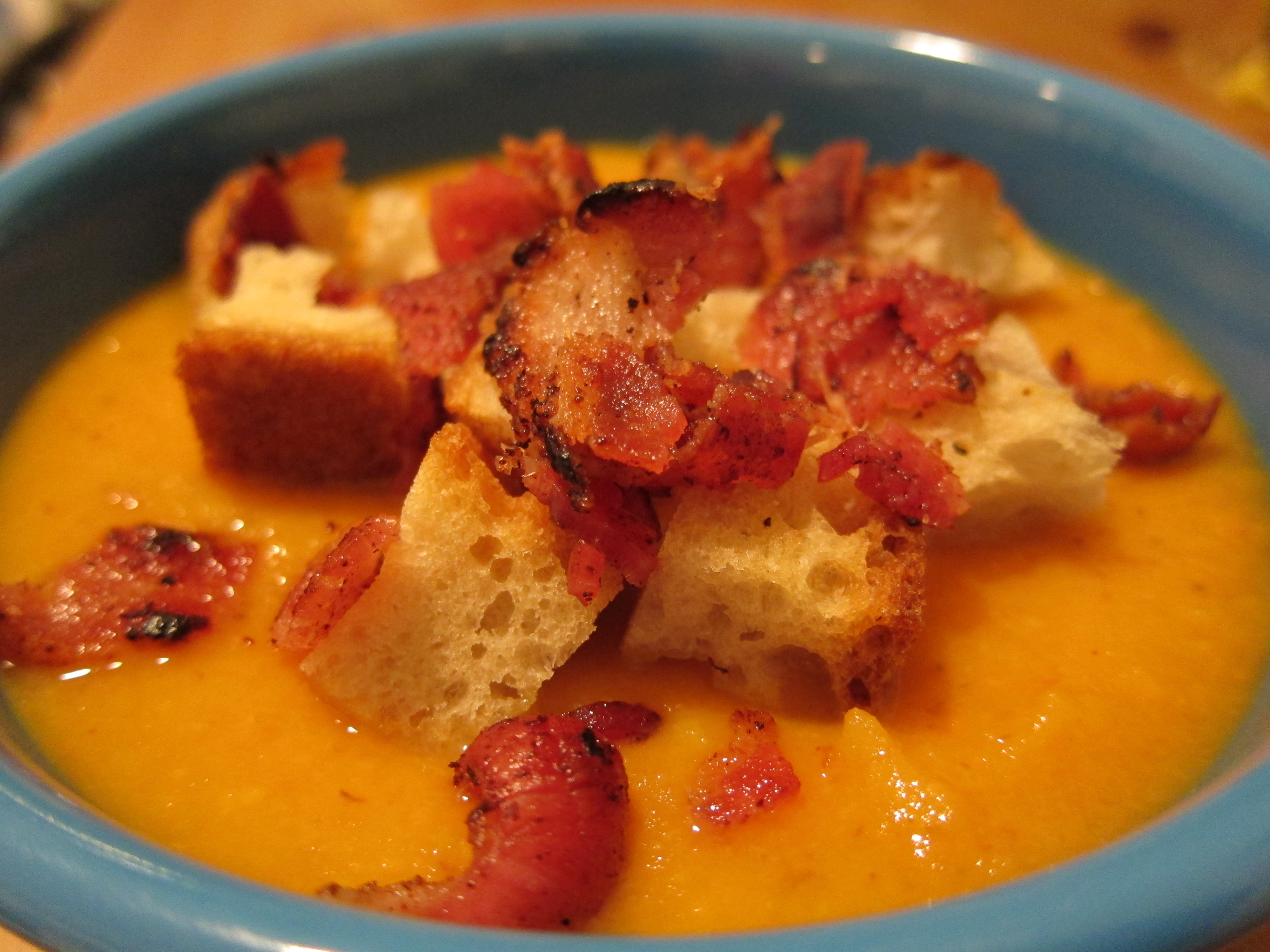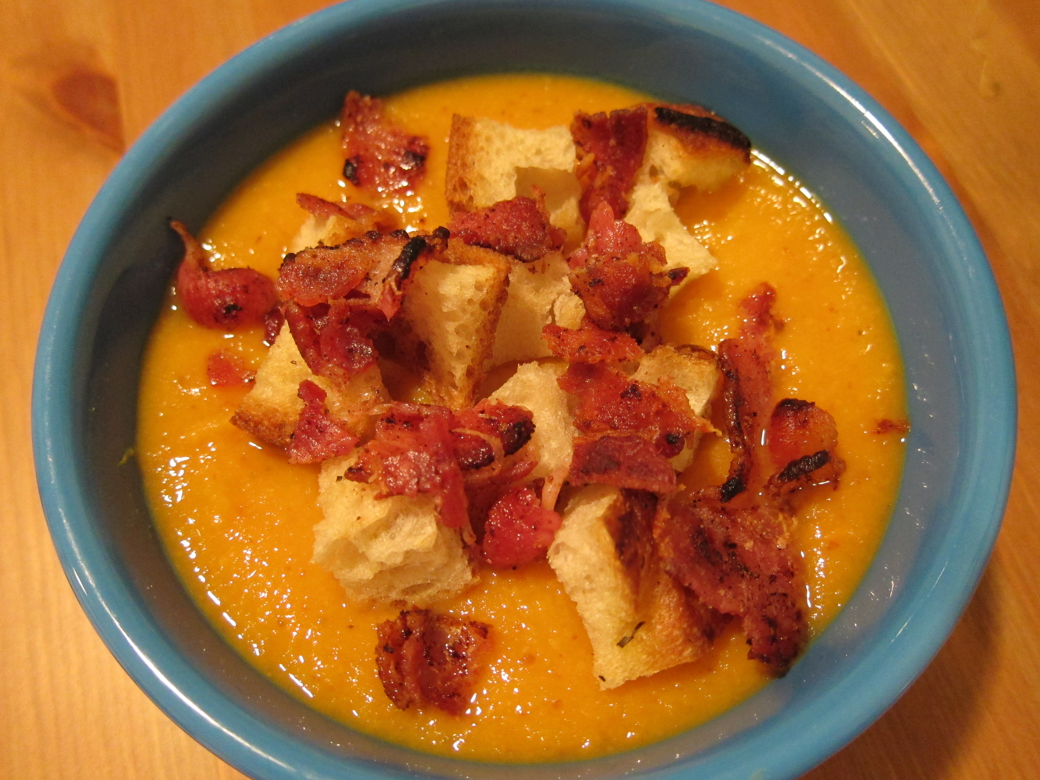 - Puree the soup in the saucepan using a handheld immersion blender. Add water, if necessary, to reach the desired consistency.